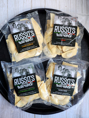 Mix and match! Get the Russo's Ravioli experience of your choice! Includes: 4 Russos Ravioli Packs of Your Choice (each pack contains 20 raviolis)