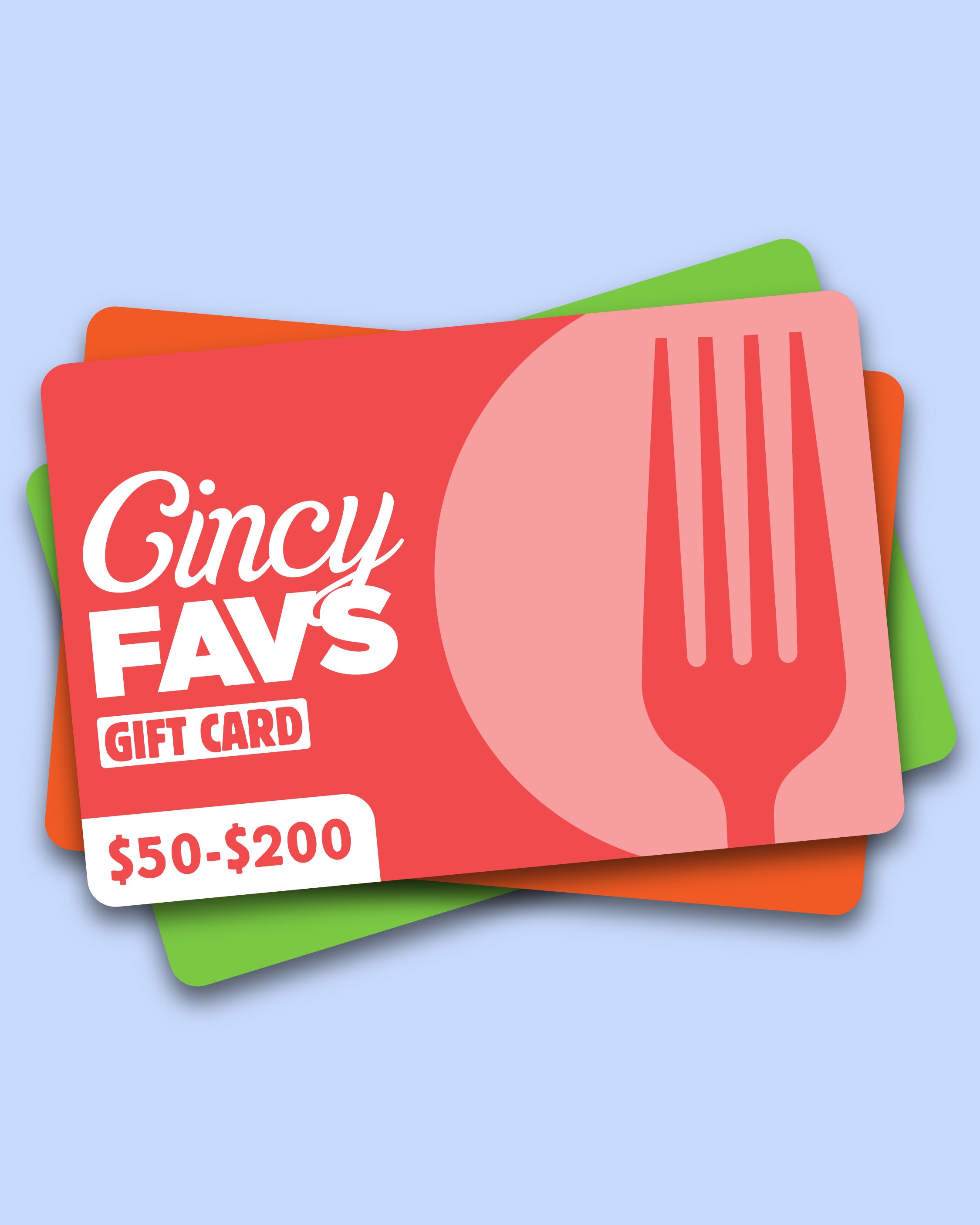 Send a Cincy Favorites Gift Card Give the gift of local flavor! A Cincy Favorites Gift Card lets your friends, family, or colleagues enjoy the best tastes of Cincinnati! From Skyline...