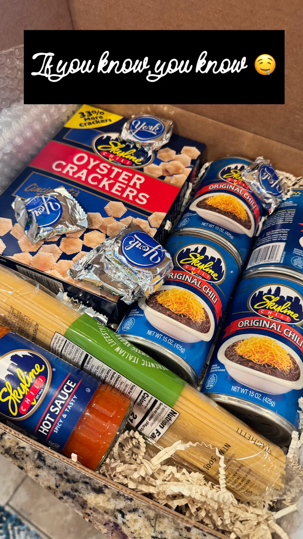 The Skyline Chili Craver Gift Set is the ultimate way to satisfy any Skyline fan’s cravings! Packed with everything you need to enjoy the authentic Cincinnati favorite at home—including Skyline Chili cans, signature oyster crackers, and hot sauce—this gift set delivers the bold flavors and traditions of Skyline straight to your kitchen. Perfect for holidays, game days, or sharing a taste of home with someone special.