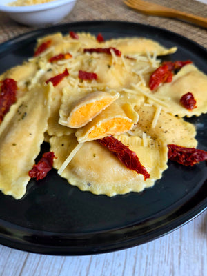 Forget what you know about traditional cheese ravioli. This indulgent filling blends creamy American cheese with bold Parmesan and Romano, seasoned with garlic and a touch of dried onion. It’s rich, nostalgic, and irresistibly reminiscent of gourmet mac and cheese—perfect with a light cream sauce or browned butter and herbs. This is easy comfort food at its best.